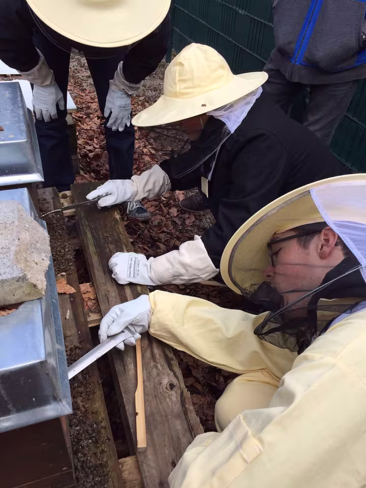 Die kalte Jahreszeit neigt sich dem Ende zu und unser Projekt „More than honey“ hat in diesem Jahr das erste Mal wieder draußen an den Beuten gearbeitet und nach unseren Schlossbienen geschaut. Durch die Presse und befreundete Imker, die über große Völkerverluste berichteten, machten wir uns auf das Schlimmste gefasst, doch unseren zwei Völkern geht es sehr gut. Wir nahmen die jährlich wiederkehrenden Arbeiten wie das Säubern des Fluglochs, die Überprüfung des Varroastatus sowie der Weiselrichtigkeit und die Analyse des Futterstands auf.